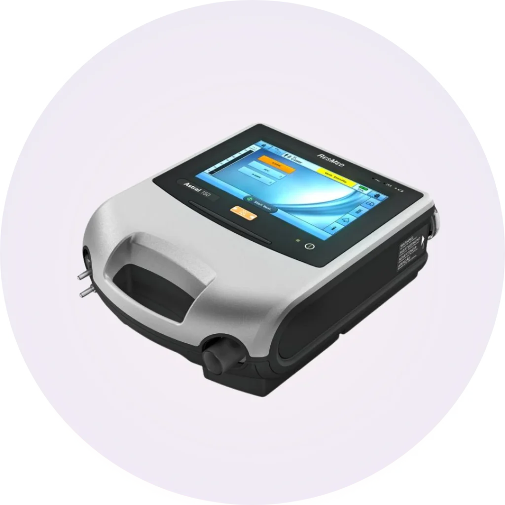 The Astral™ 150 is a compact, lightweight, and user-friendly ventilator designed for home and portable use.